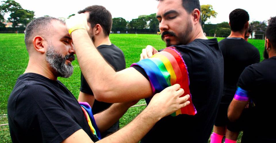 E, assim como vários grupos nasceram no futebol e se tornaram poliesportivos, em São Paulo, uma outra galera se juntou em torno de esporte, digamos, pouco comum no Brasil. São os Tamanduás-Bandeira que fazem partidas LGBT+ de rugby e são o primeiro time do tipo no Brasil.